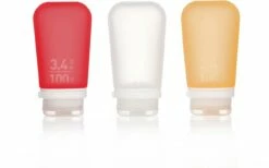 Great for use while camping or traveling, the redesigned humangear 3.4 fl. oz. GoToob+ large squeeze bottle 3-pack makes it simpler than ever to get around with your “must-have” gels and lotions.