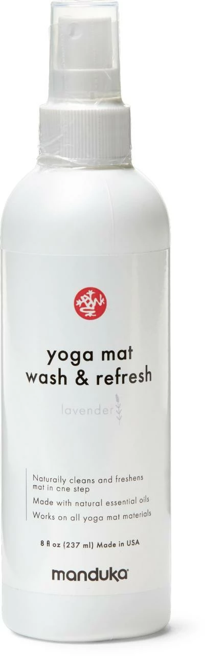 Keep your yoga mat smelling fresh and its surface free of dirt and stains with the Manduka Yoga Mat Wash and Refresh spray. It’s an easy, quick way to maintain your mat after each session.